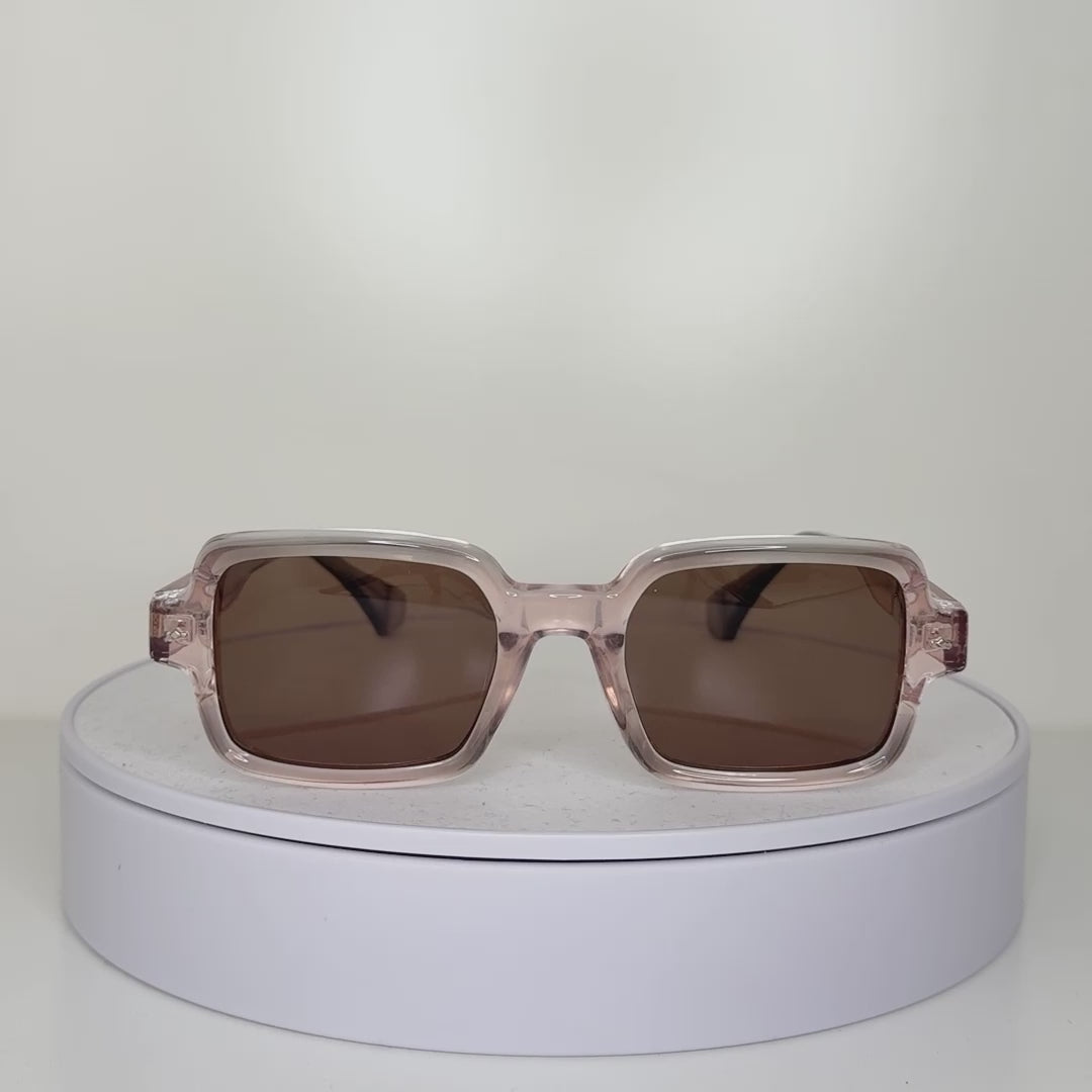 With its soft rose-pink translucent frame and rich mocha-tinted lenses, Bloom brings a refreshing twist to classic square silhouettes. Lightweight yet statement-worthy, this pair is your go-to for effortlessly standing out while staying comfortably chic.