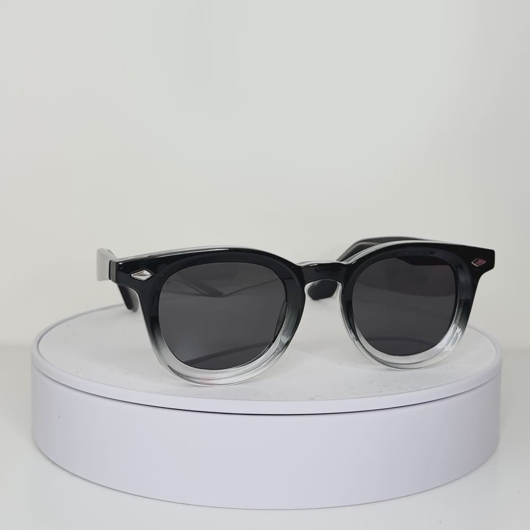 These gradient black-to-clear acetate sunglasses bring a bold yet versatile aesthetic. With a classic round silhouette and sleek dark lenses, Shadow combines timeless charm with a modern edge — perfect for both casual outings and polished looks.